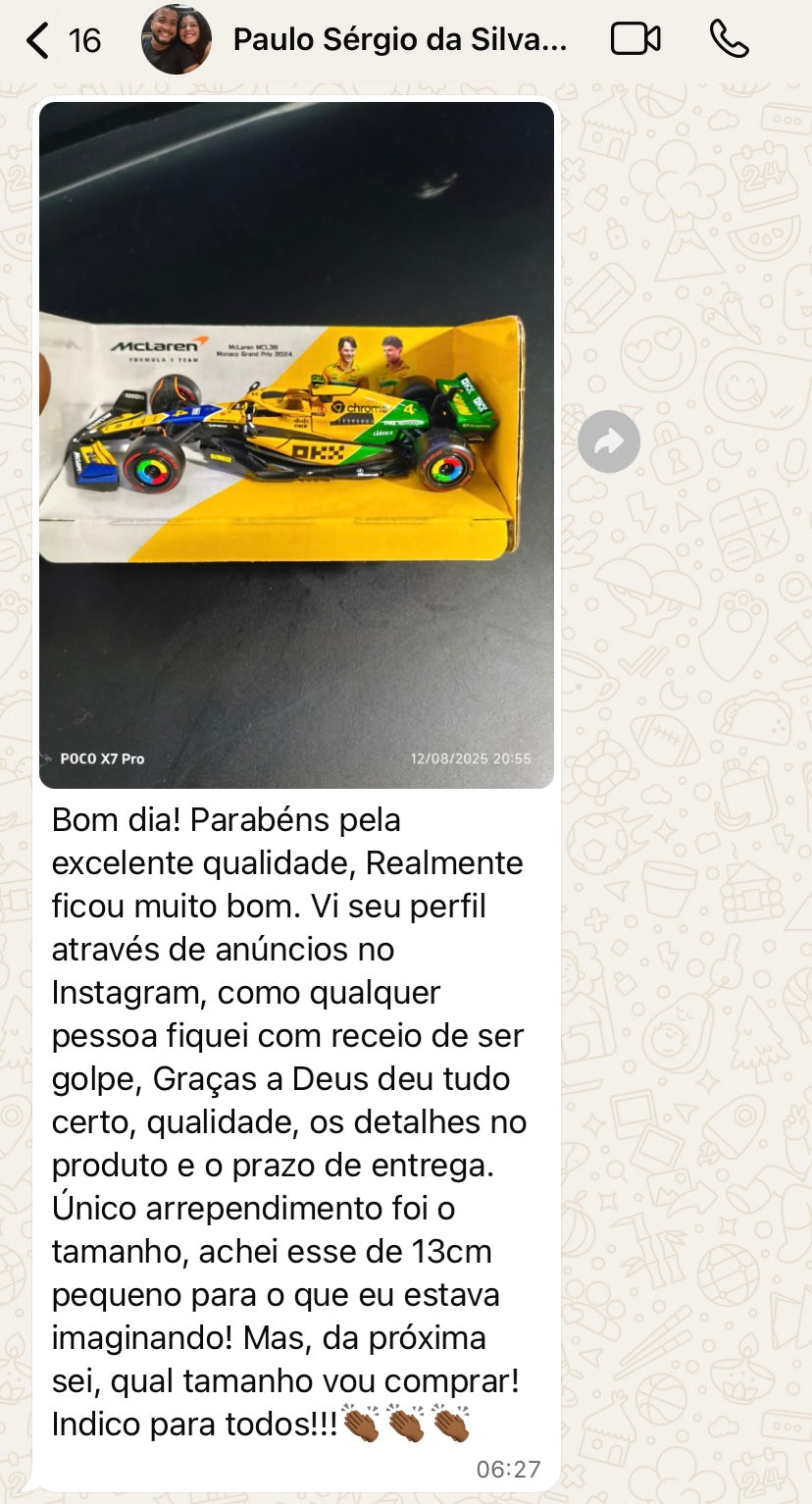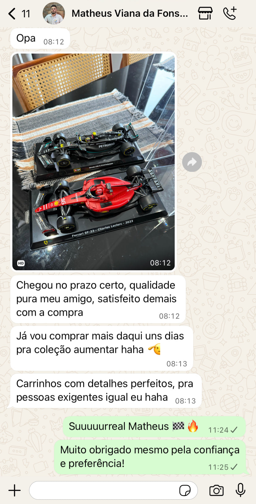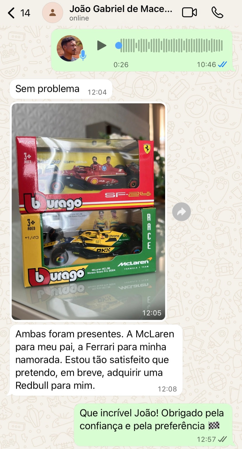 Trabalhamos com estoque limitado, e modelos como Red Bull Racing, Ferrari e McLaren se esgotam com frequência.