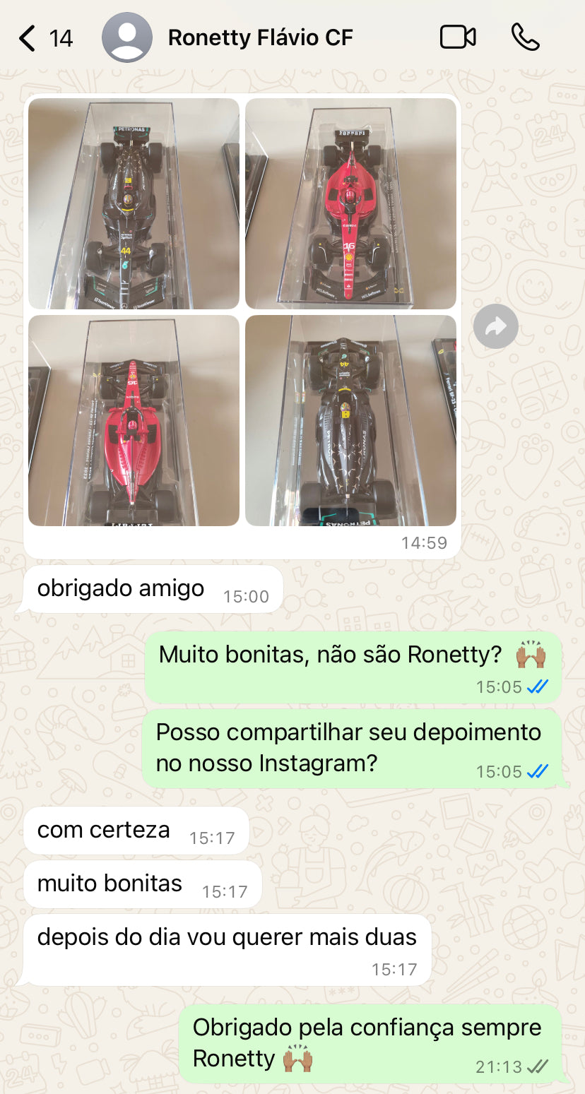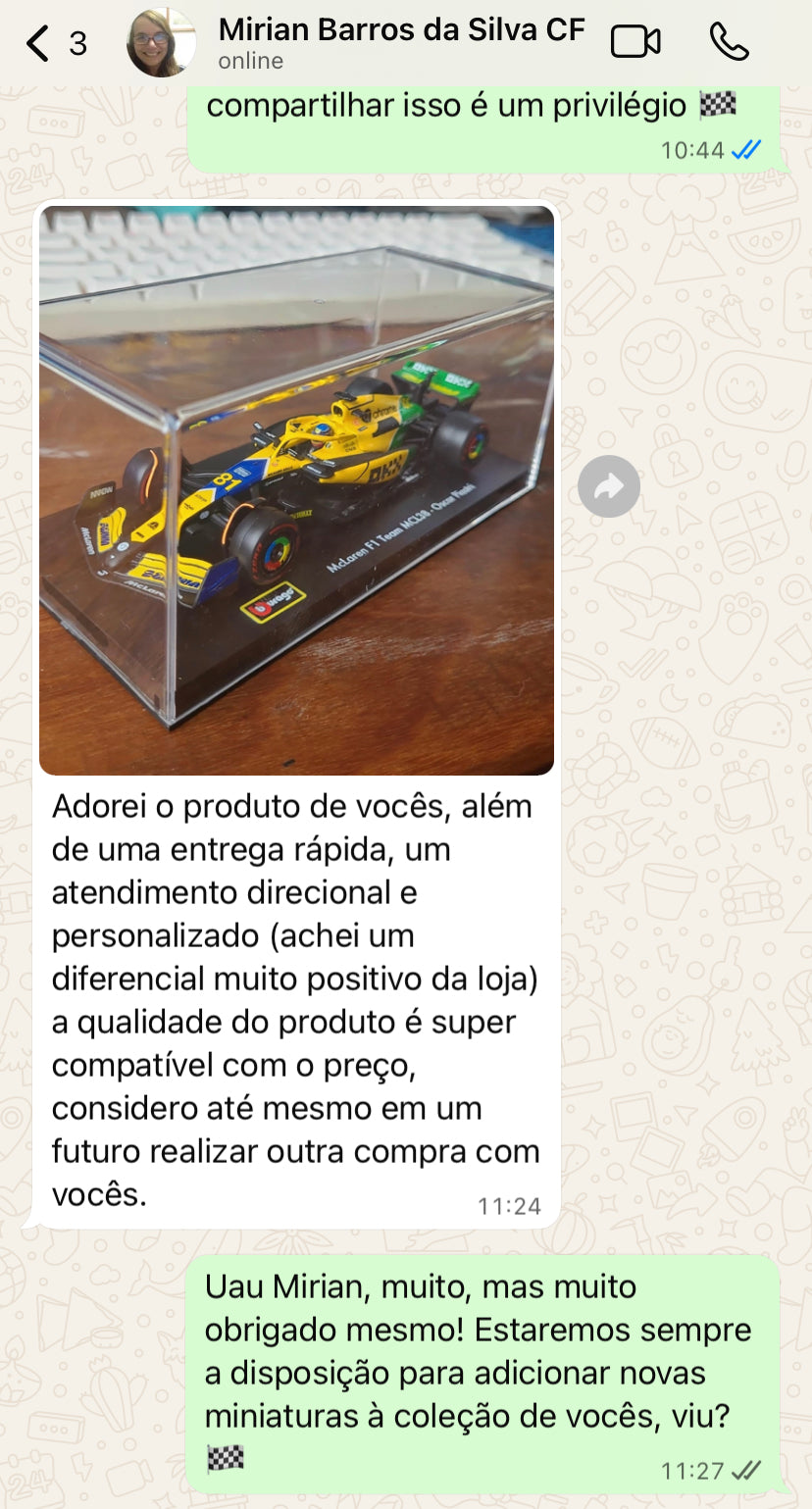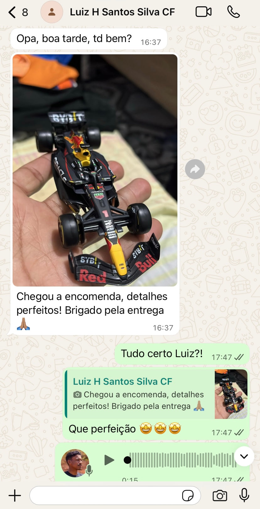 Trabalhamos com estoque limitado, e modelos como Red Bull Racing, Ferrari e McLaren se esgotam com frequência.